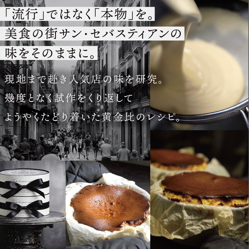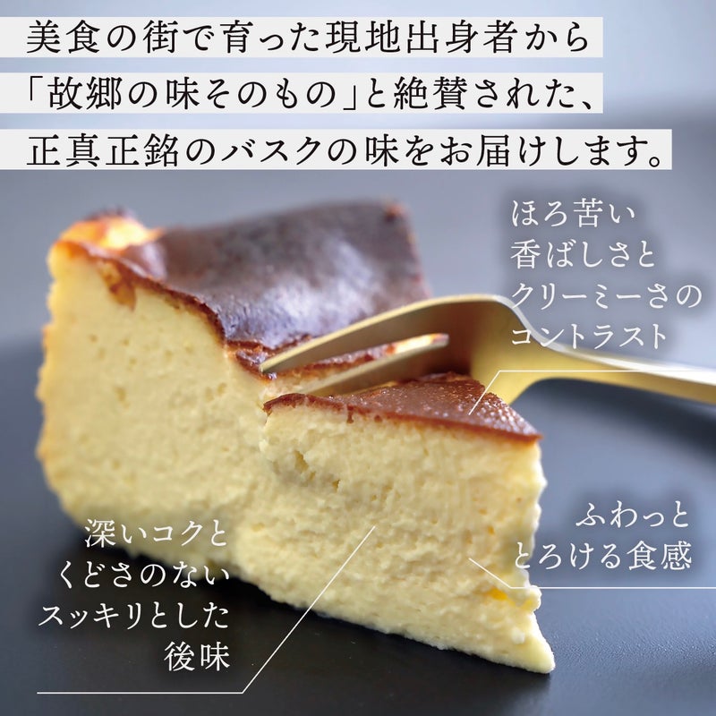 流行ではなく「本物」を。美食の街、スペインのサンセバスチャンで愛されるバスクチーズケーキの味を、何度も試作を重ね再現しました。甘さ控えめで白ワインやお酒にも合う大人のための贅沢スイーツです。